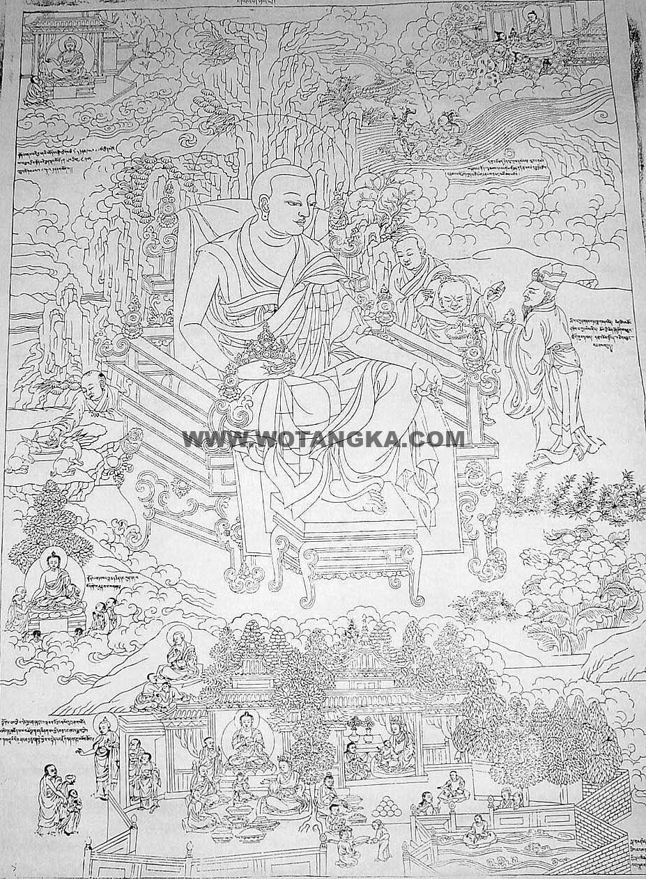 沃唐卡-唐卡白描线稿编号RD11135:德格巴宫·罗怙罗尊者(Rahula)