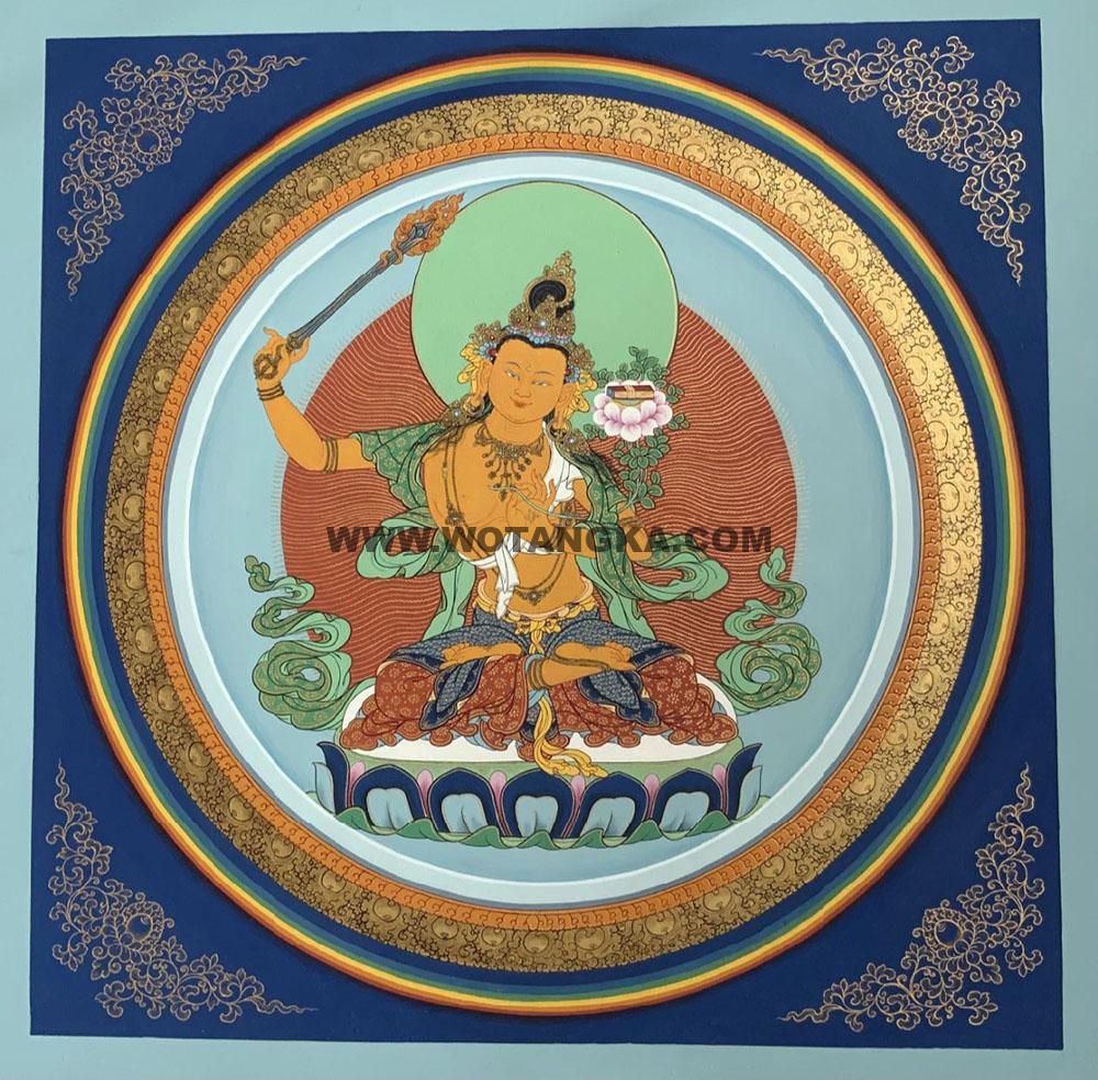 编号188-346051:彩绘唐卡-文殊菩萨(50*50CM左右) | 沃唐卡www.WoTangKa.com