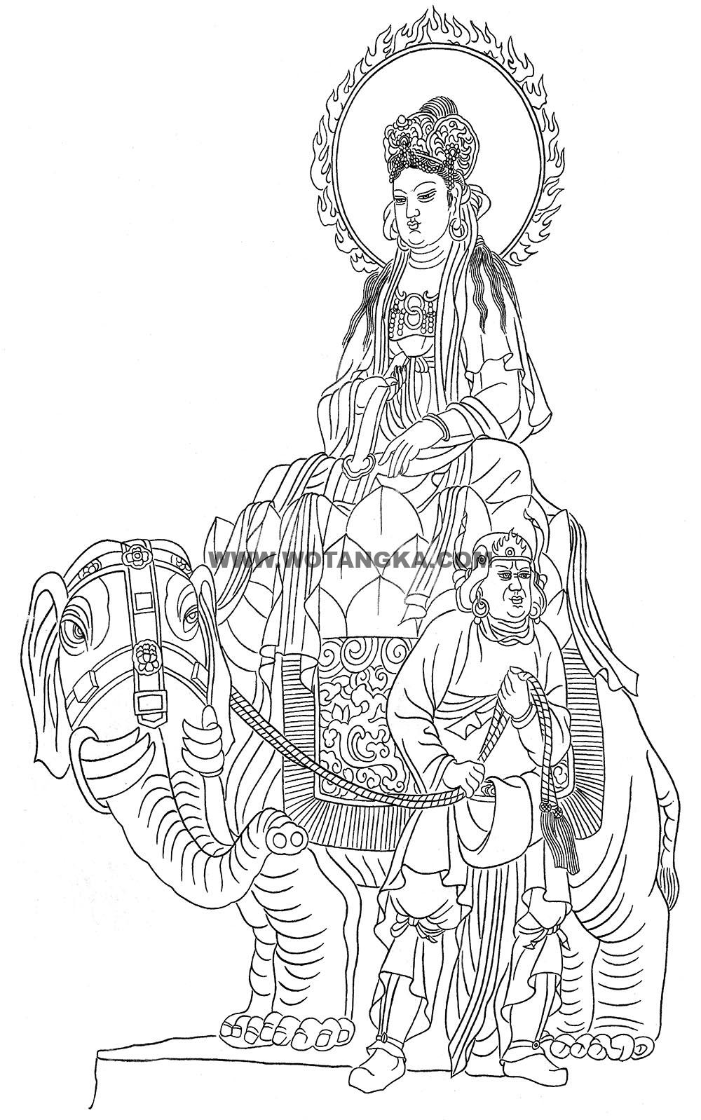 沃唐卡-唐卡白描线稿编号RD68406:骑象出巡普贤菩萨