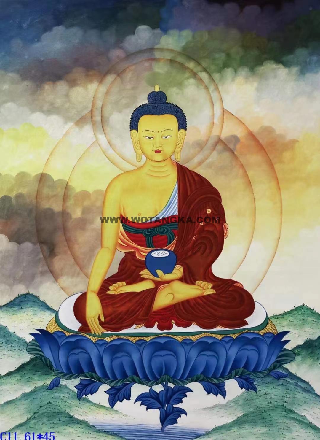 尼泊尔知名唐卡画师手绘力作精品,纯手绘布本唐卡【释迦牟尼佛】,作品采用24K真金金粉混合天然颜料纯手绘而成。作品主尊宝相传神。布图干净精美、画工非常的细腻,严格的遵照佛经的度量仪轨如法绘制,期待有缘人。