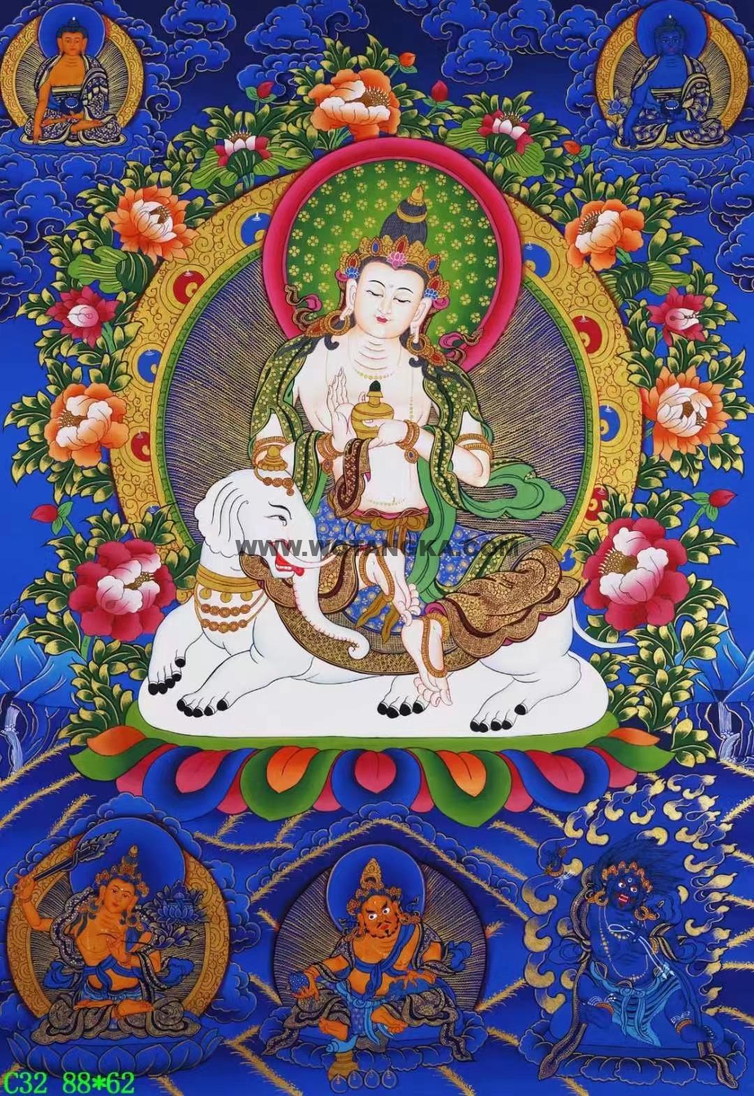尼泊尔知名唐卡画师力作《普贤菩萨》唐卡手绘布本,作品采用24K真金描线,天然矿石颜料着色晕染,画工细腻,开脸殊胜,是一副难得一见的好唐卡作品。