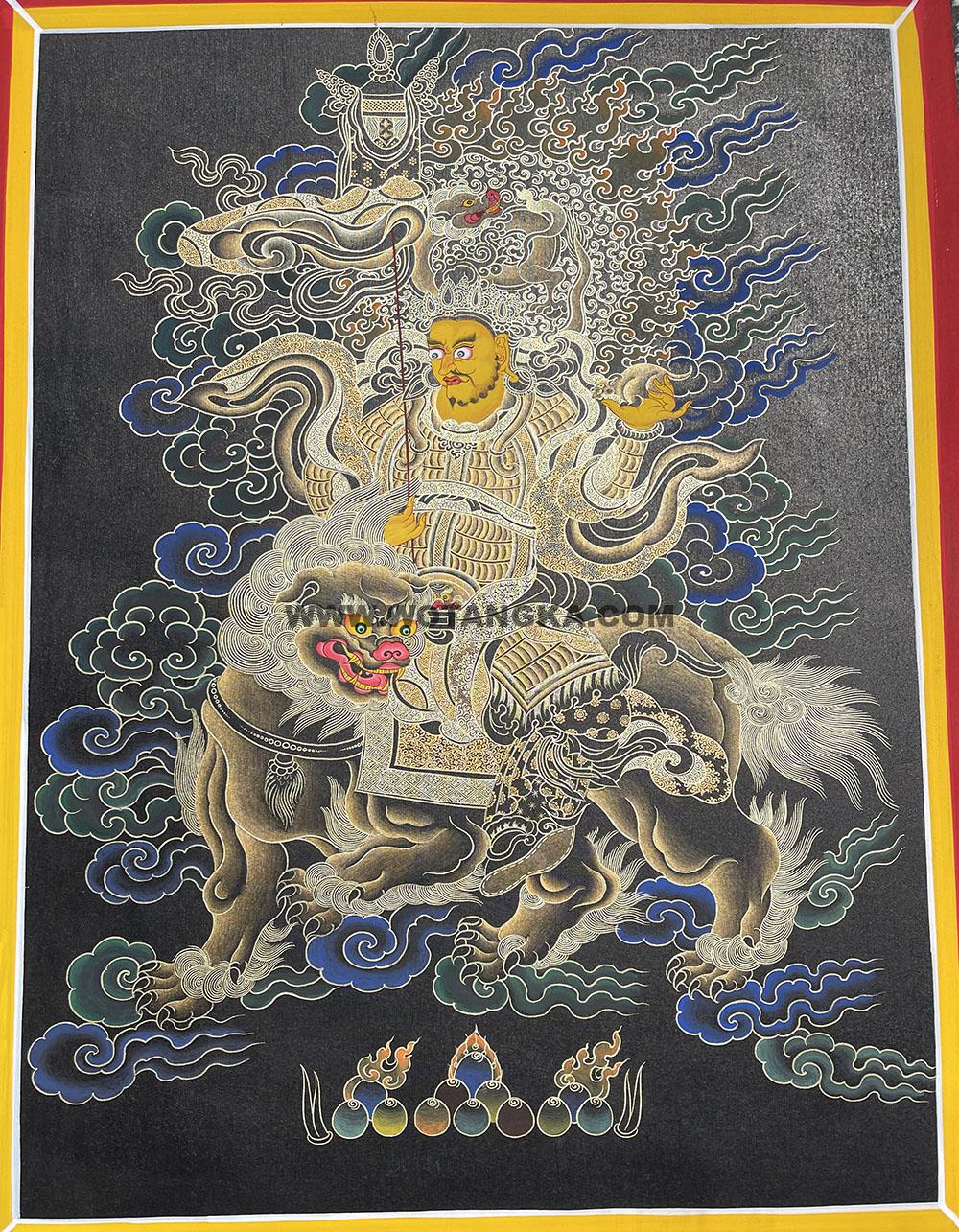 中国唐卡艺术作品中的【财宝天王】唐卡手绘布本,热贡知名画师李加当周·画院出品,收藏供奉不要错过。作品主尊宝相传神, 采用天然矿石晕染,纯金描线,画工细腻,殊胜,精美、风格富丽,采用24K真金描绘,画工细腻,开脸殊胜,是一副难得一见的好唐卡作品。