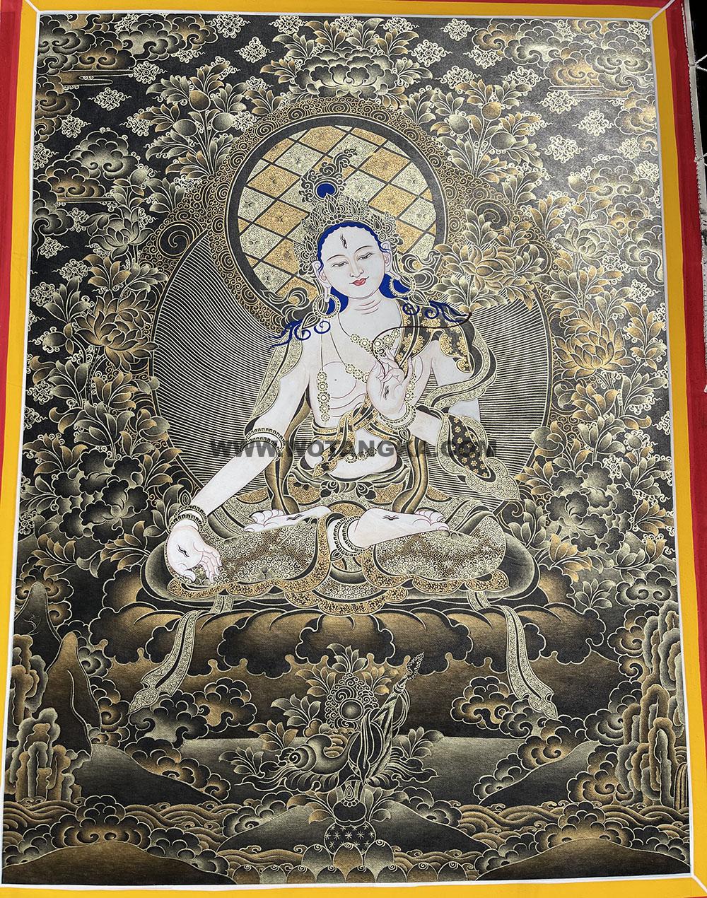 编号188-949650:黑金唐卡-白度母(65*48CM左右) | 沃唐卡www.WoTangKa.com