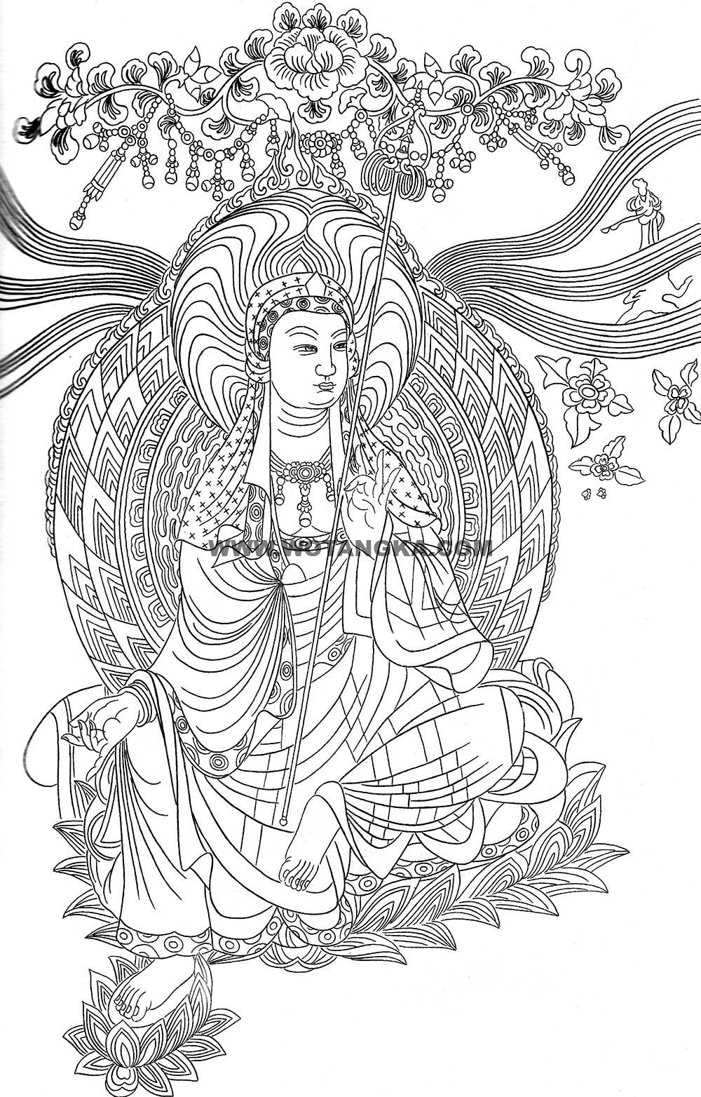 沃唐卡-唐卡白描线稿编号RD15162:地藏王菩萨虹光法相图