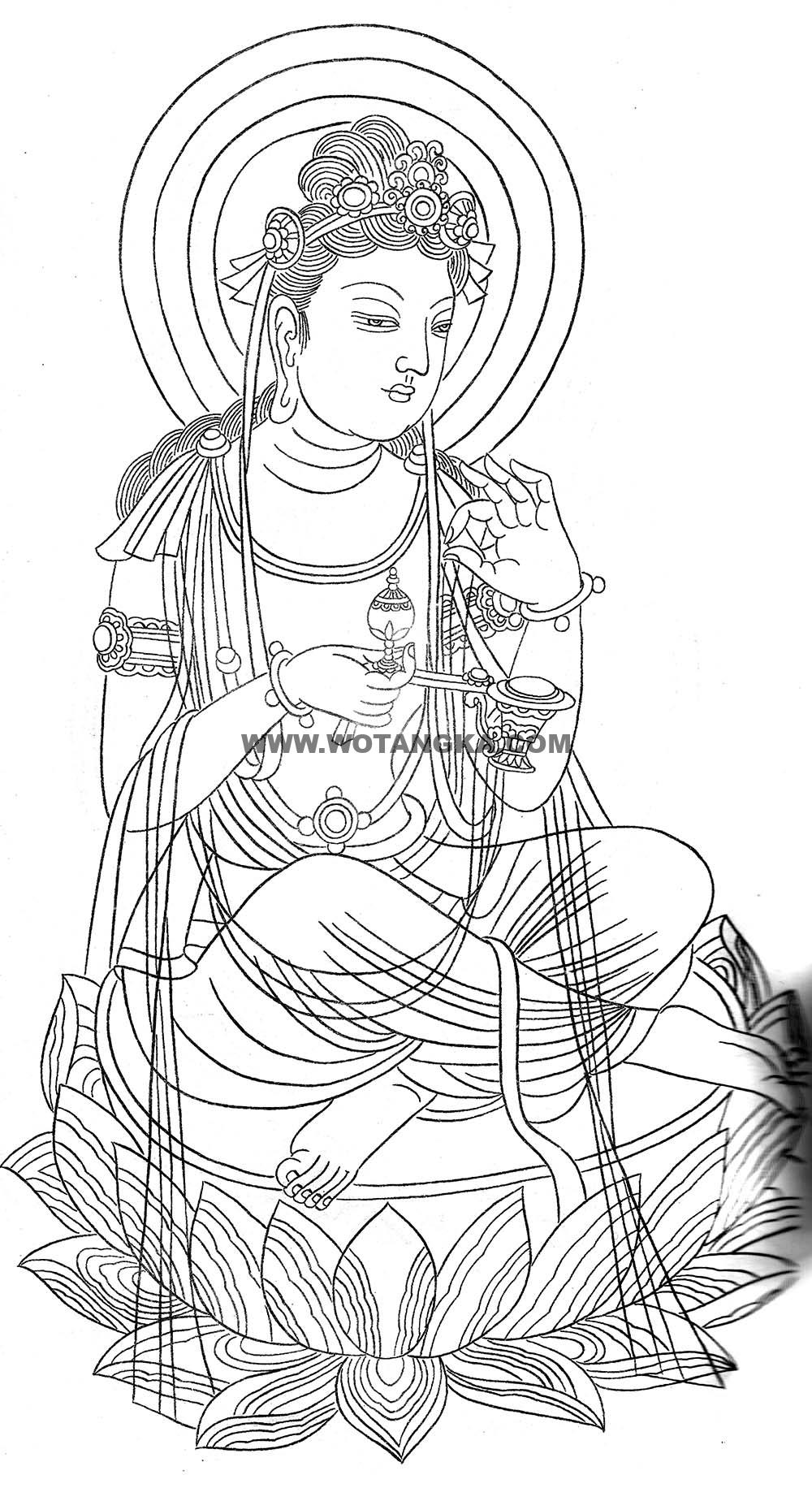 沃唐卡-唐卡白描线稿编号RD39515:如意菩萨