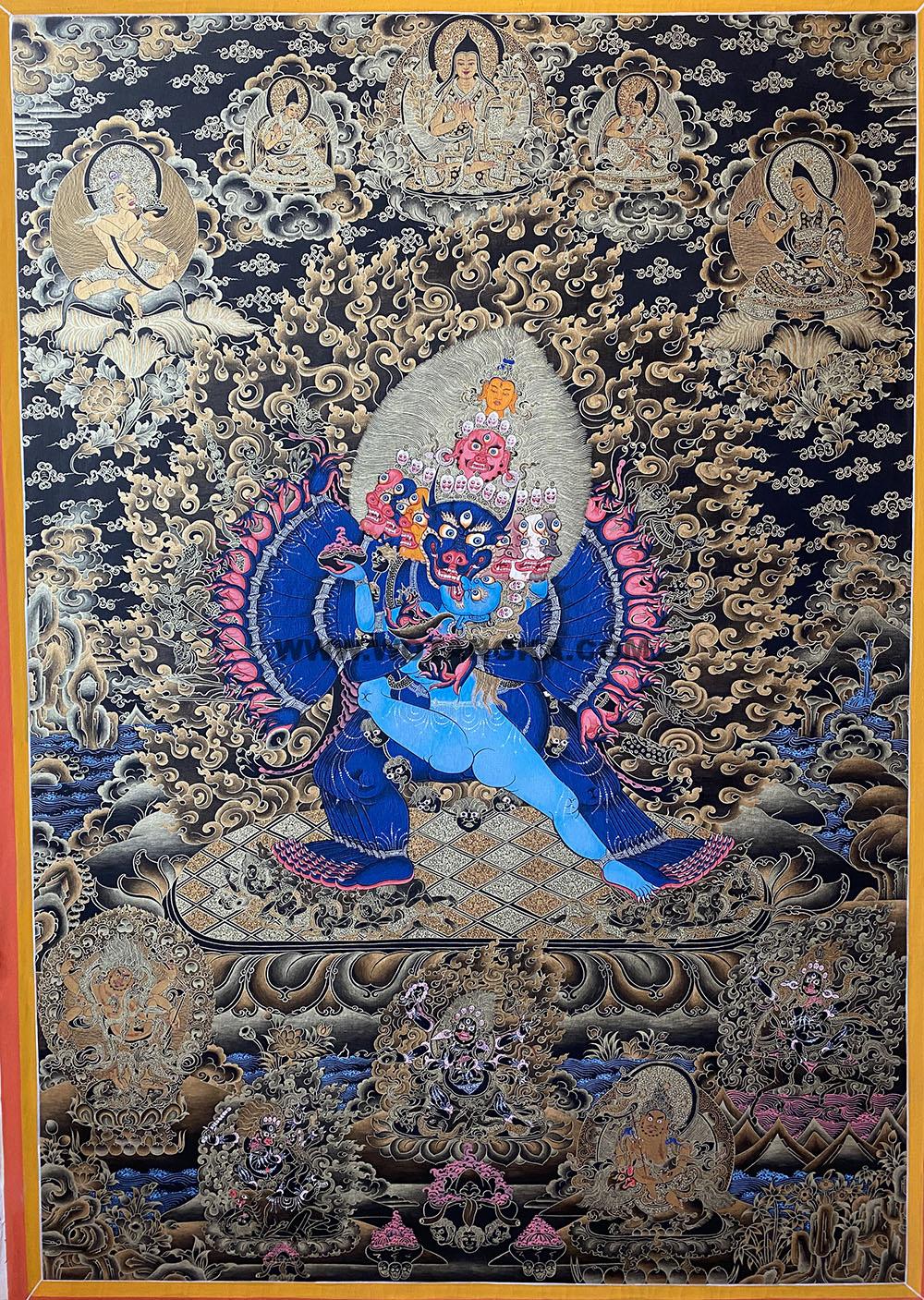 编号188-593238:黑金唐卡-大威德金刚(100*70CM左右)