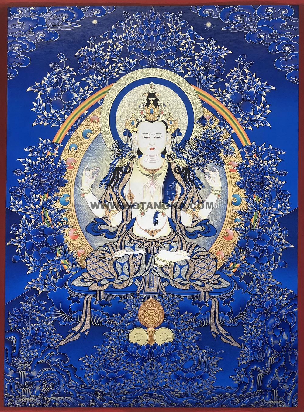 编号188-919095:蓝金唐卡-四臂观音(70*50CM左右) | 沃唐卡www.WoTangKa.com