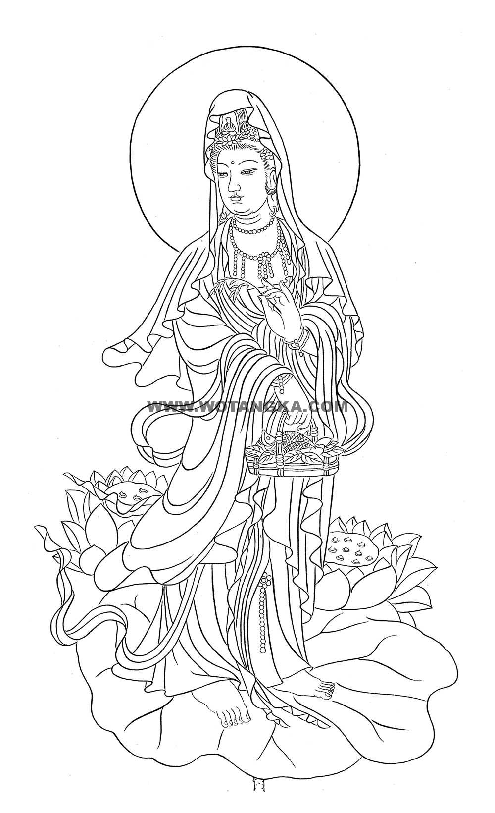 沃唐卡-唐卡白描线稿编号RD92553:马郎妇观音
