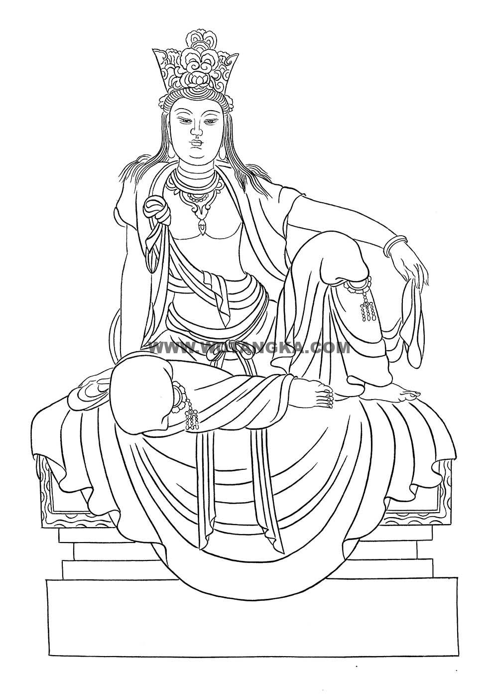 沃唐卡-唐卡白描线稿编号RD69848:静息观音