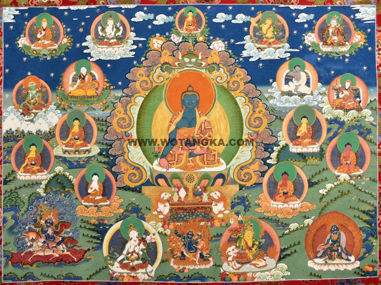编号188-550677:彩绘唐卡-药师佛·药师八佛(130*255CM左右) | 沃唐卡www.WoTangKa.com