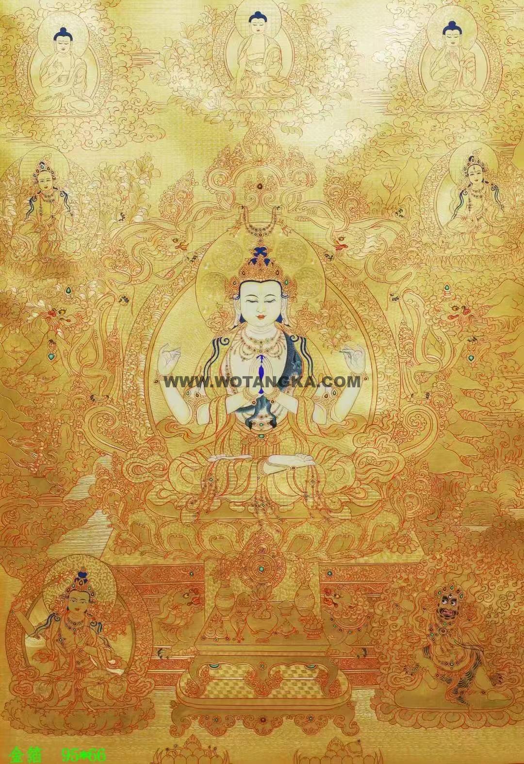 编号138-202185:黄金唐卡-四臂观音·三怙主(95*66CM左右) | 沃唐卡www.WoTangKa.com