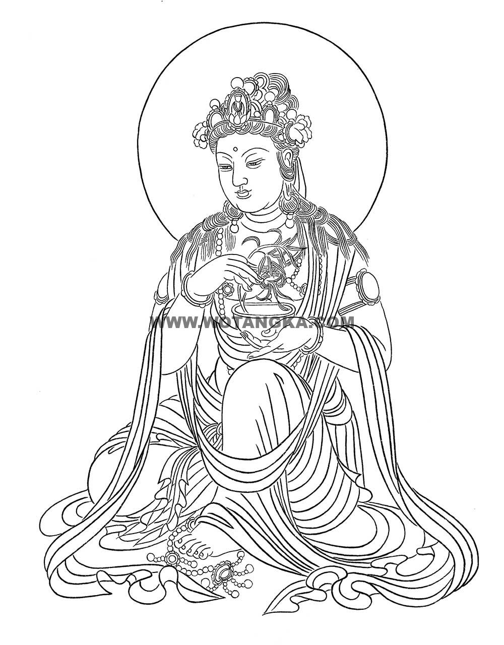 沃唐卡-唐卡白描线稿编号RD57231:洒水观音