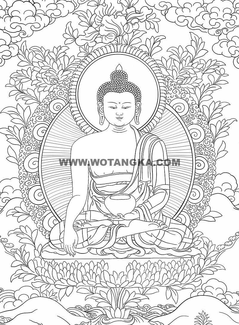 沃唐卡-唐卡白描线稿编号RD93399:释迦牟尼佛