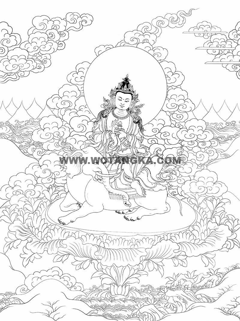 沃唐卡-唐卡白描线稿编号RD88845:普贤菩萨