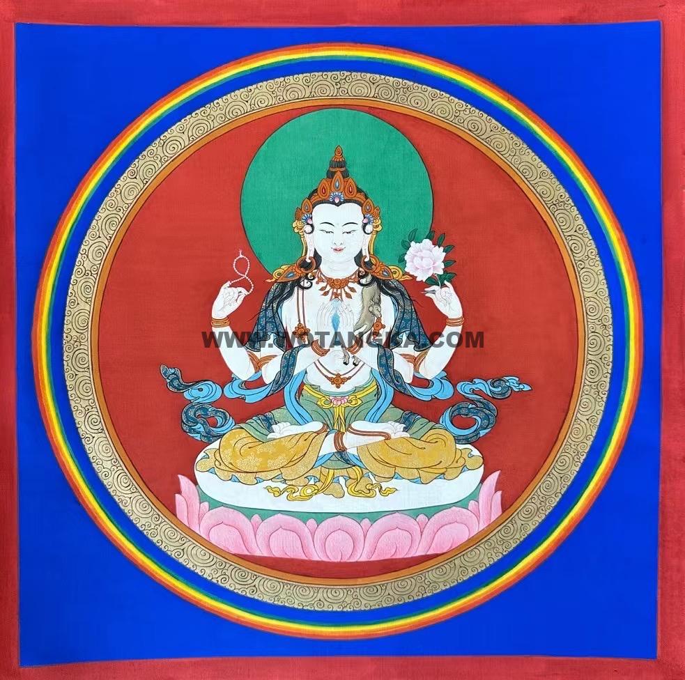 编号188-972845:彩绘唐卡-四臂观音(50*50CM左右)
