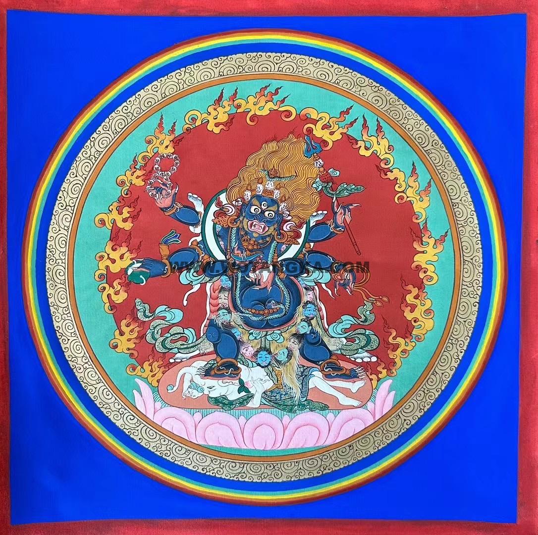 唐卡作品名称:六臂大黑天烈焰虹金轮坛城小方