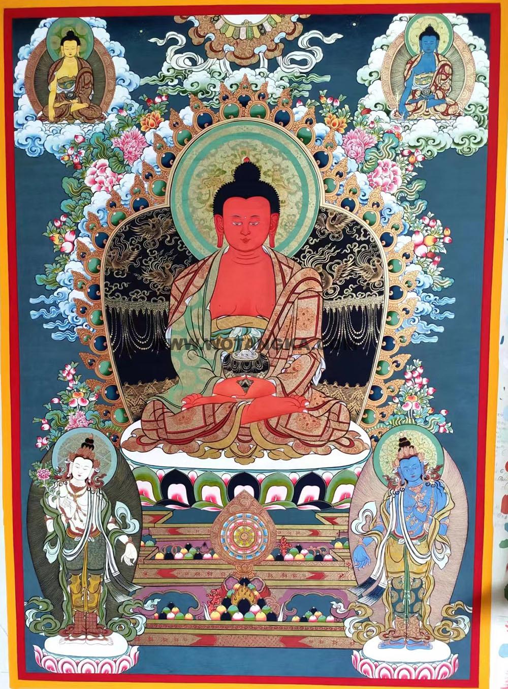 唐卡材质:白棉布、名贵矿石颜料、黄金等贵金属