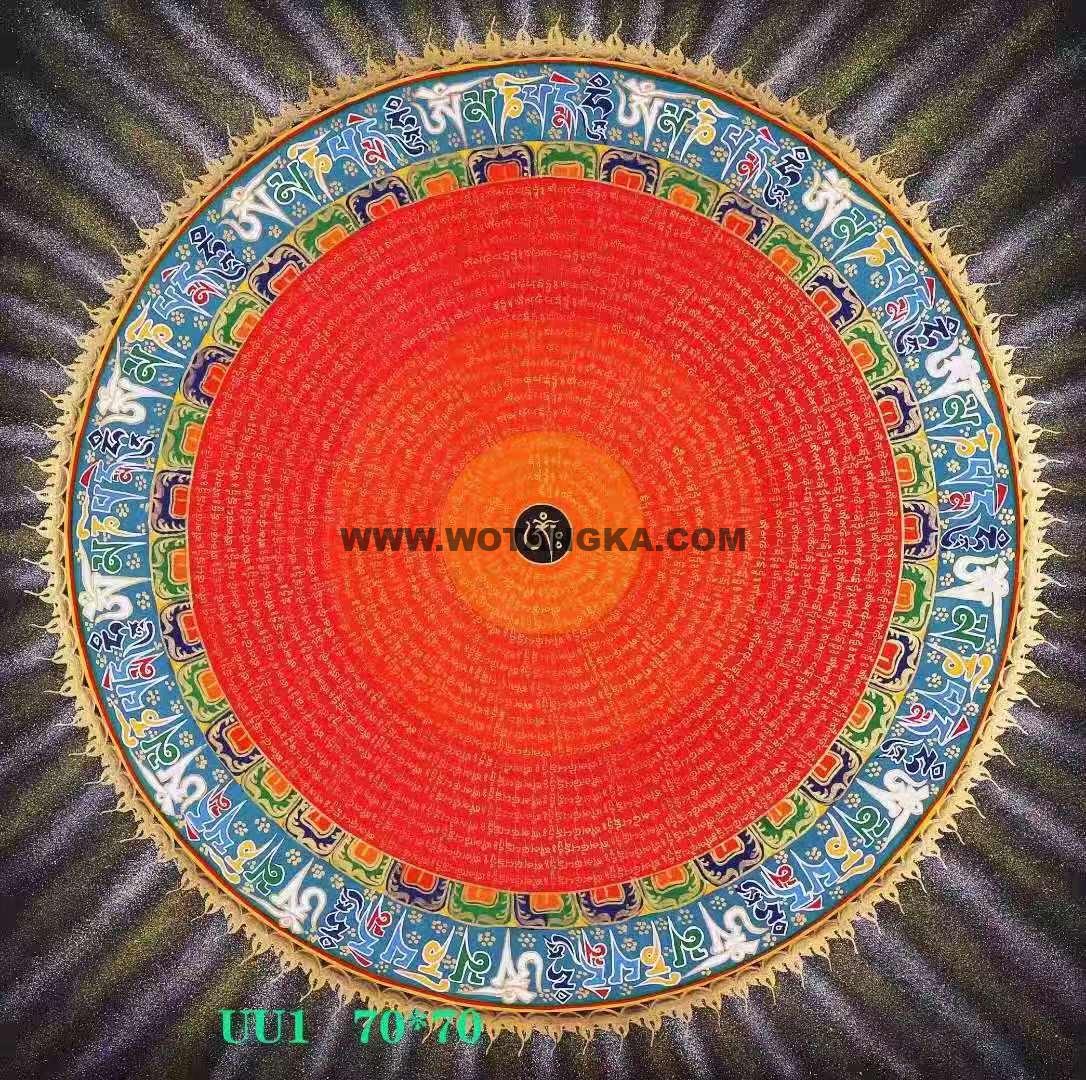 吉祥八宝六字真言经文坛城唐卡 【吉祥八宝坛城】曼陀罗,唐卡手绘布本。采用24K真金描线,天然矿石颜料着色晕染,画工细腻,精致,精品不要错过。
