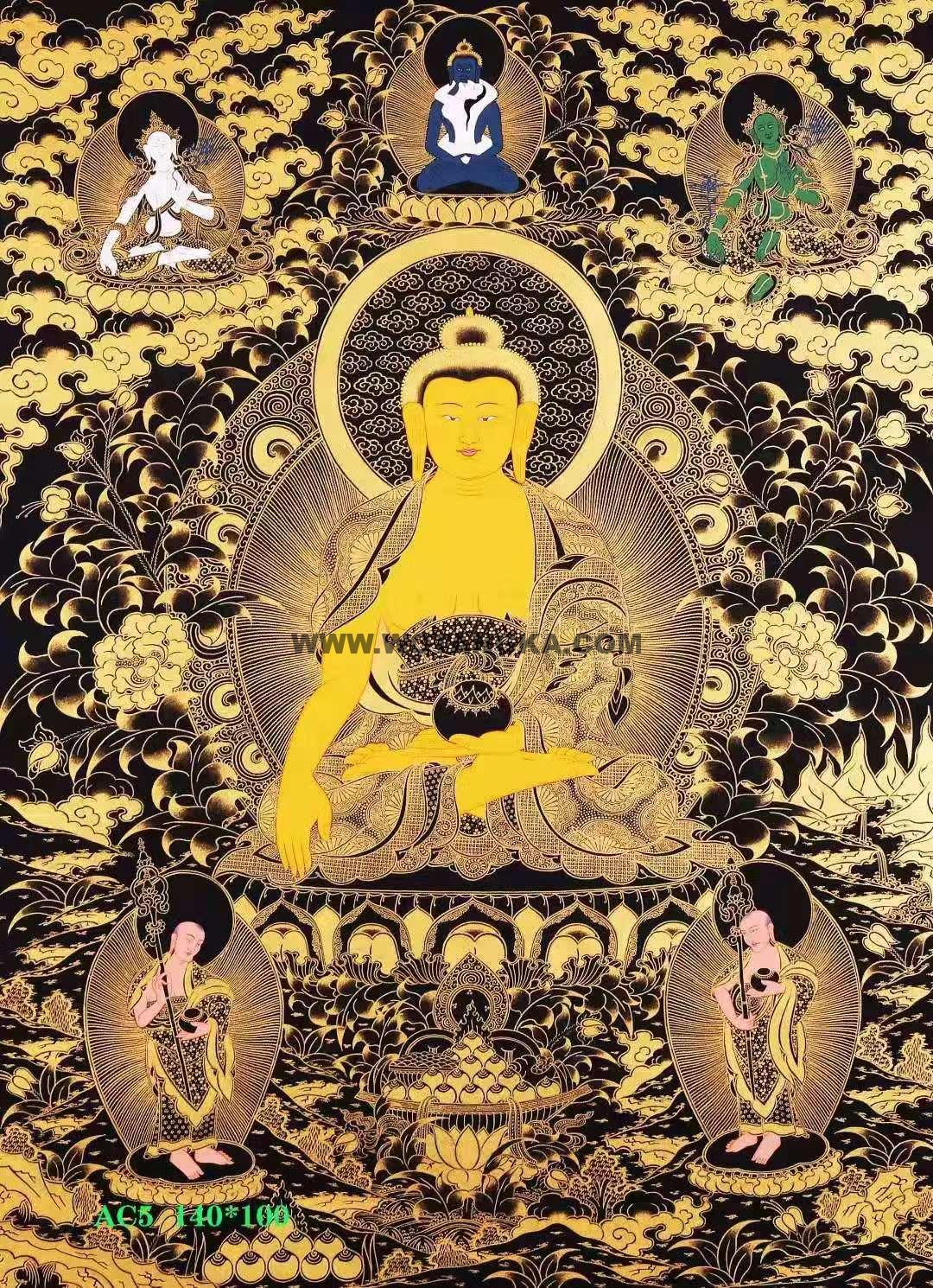 唐卡材质:白棉布、名贵矿石颜料、黄金等贵金属