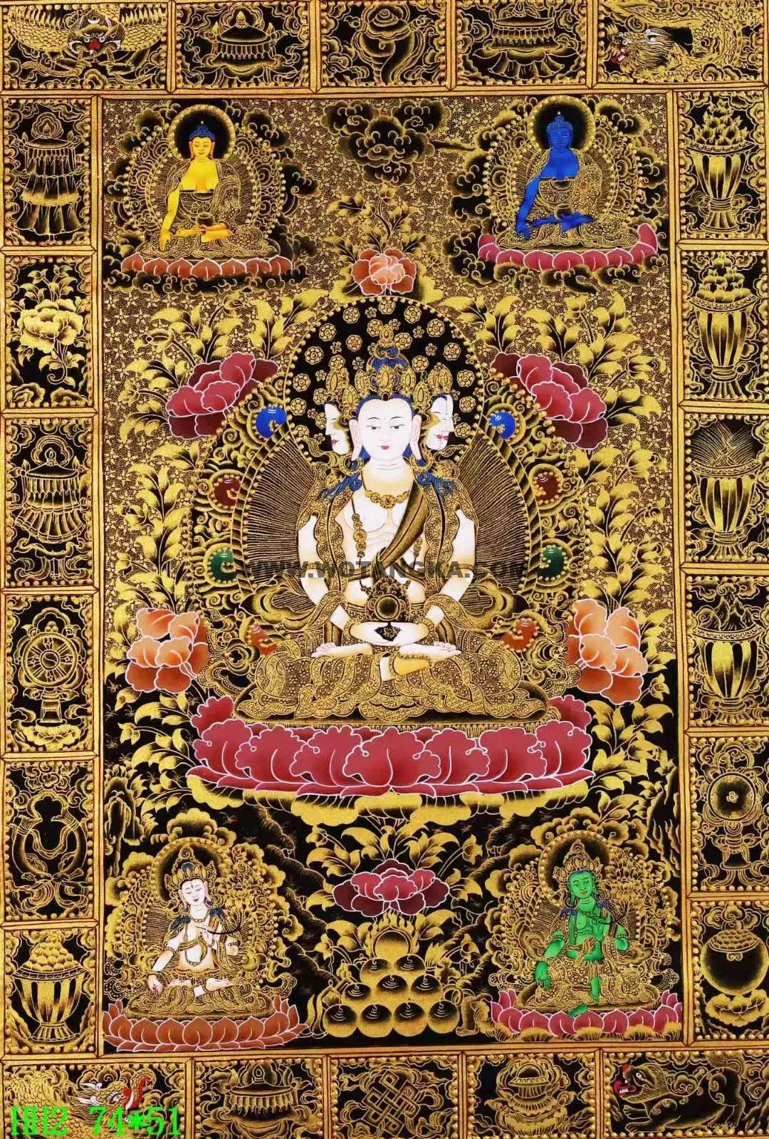 唐卡材质:白棉布、名贵矿石颜料、黄金等贵金属