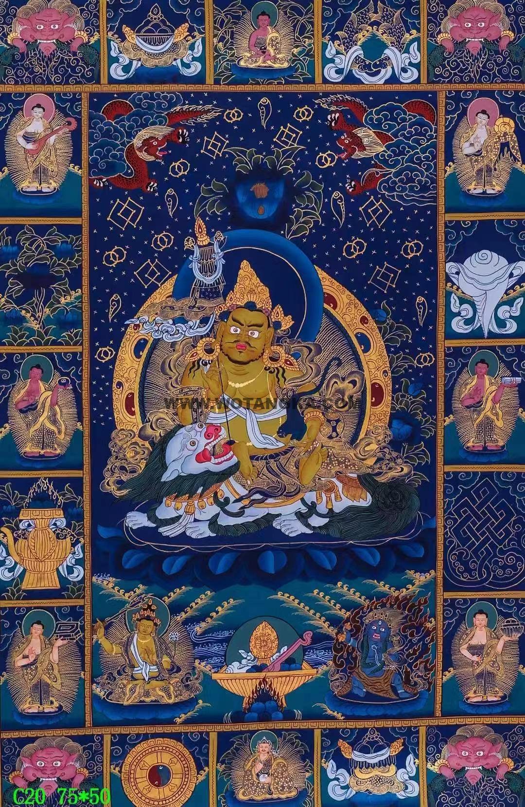 尼泊尔知名唐卡画师力作《财宝天王》 唐卡手绘布本,采用天然矿物、宝石、植物、24K真金描绘。天然矿石颜料着色晕染,画工细腻,开脸殊胜,是一副难得一见的好唐卡作品。喜欢不要错过。