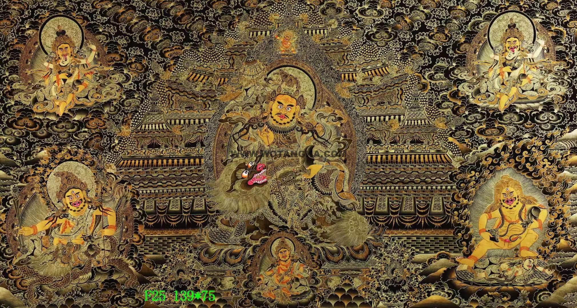 编号138-156747:黑金唐卡-财宝天王·五方财神(75*139CM左右) | 沃唐卡www.WoTangKa.com
