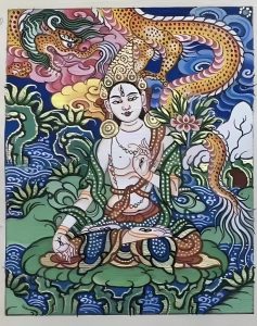 白度母为二十一度母之一,是一切众生尤其是女性的无比圣神,是保佑心想事成,赐寿除障的如意宝。白度母集二十一度母之功德于一身,能消除病痛邪风,妖魔鬼怪等外部之障与贪嗔痴等内部之障,勇猛无比,形随众生,变幻莫测。藏传佛教认为生信者只要一念及,即能以兄弟姐妹之情倾力相助,堪称众女神之王。