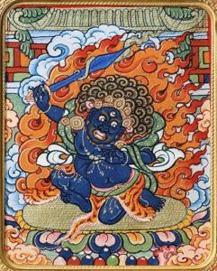 不动明王其誓愿为“见我身者发菩提心,闻我名者断恶修善,闻我法者得大智能,知我心者即身成佛。”威力甚大,不动明王法像不论汉地佛教或藏传佛教,都重视修习本尊法门,又被称作大威力不动明王或常住金刚。