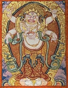 六臂白玛哈嘎拉正名为白如意珍宝依怙主 。首宏於香巴噶举,後另传至萨迦派分支,为特别不共法门,是求财的智慧护法,相传此尊住於印度清凉尸陀林。