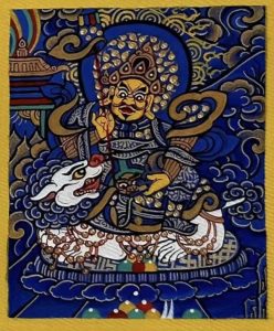 财宝天王是格鲁派祖师宗喀巴大师所供奉的护法。在宗喀巴大师的传记中,就记载着赐予财富、协助宗喀巴大师修建寺院的神奇故事。