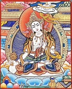 大白伞盖佛母,藏文名叫“杜甘姆”,象雄文名叫“布扎阿甘”, 大白伞盖佛母是诸佛事业的化身佛,其化相亦有多种,包括千手、十臂、六臂及二臂相的大白伞盖佛母等。 大白伞盖佛母属于密宗的佛,是显密合壁的化身佛,三世如来的佛母,扭转一切逆缘障碍的金刚本尊,降伏妖魔的贤神,大白伞盖经典是一切密咒的精华。