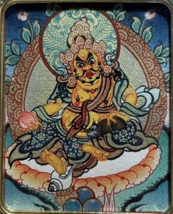 黄财神在象雄文中称为“占巴拉”,藏文叫做“诺拉”,翻译成汉文叫做“财神”。 藏名叫作“占巴拉色波”或“藏色”,他的色肤是黄色,故称为黄财神。黄财神为藏地各大教派尊奉的五色财神之一,黄财神在密宗教法中,属于财神也是护法神,五色财神之一。