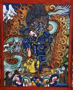 黑财神是由古印度神话中财神(梵名库别拉)演化而来的。藏语称他“赞布绿那布”,意即黑财神。