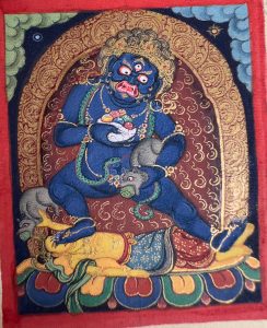 黑财神是由古印度神话中财神(梵名库别拉)演化而来的。藏语称他“赞布绿那布”,意即黑财神。