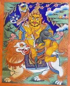 财宝天王是格鲁派祖师宗喀巴大师所供奉的护法。在宗喀巴大师的传记中,就记载着赐予财富、协助宗喀巴大师修建寺院的神奇故事。
