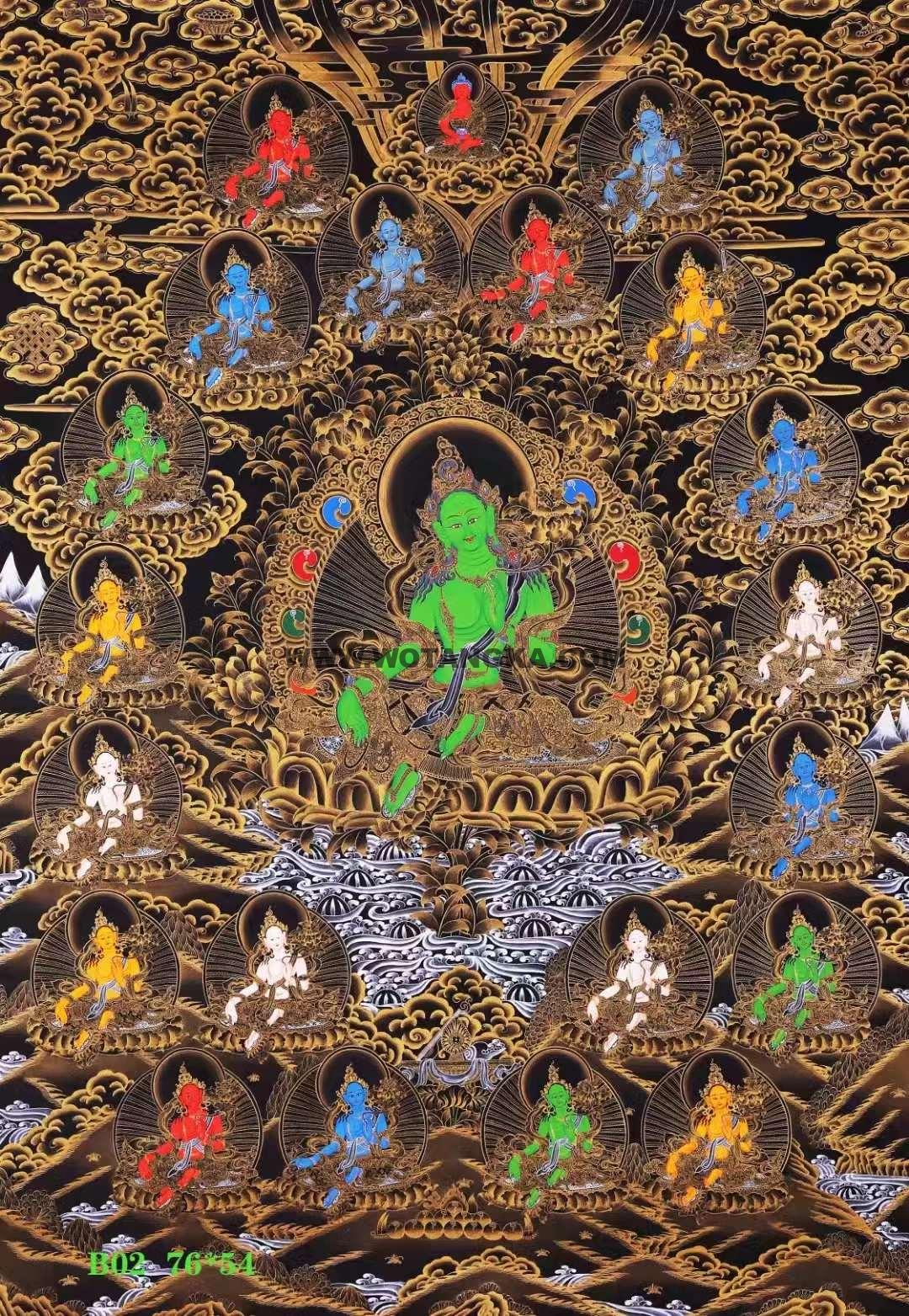 尼泊尔画师力作【绿度母】【二十一度母】金粉混合矿物颜料纯手绘而成。作品主尊宝相传神,布图精美、画工非常的细腻,严格的遵照佛经的度量仪轨如法绘制,期待有缘人。