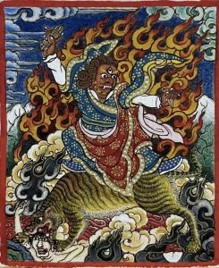 在佛教中,莲师忿怒金刚(多杰卓勒)像是被尊为”第二佛陀”的莲花生大师的八种神变身之一。本身为智慧化身,没有物质性的身体,为虹霓身。