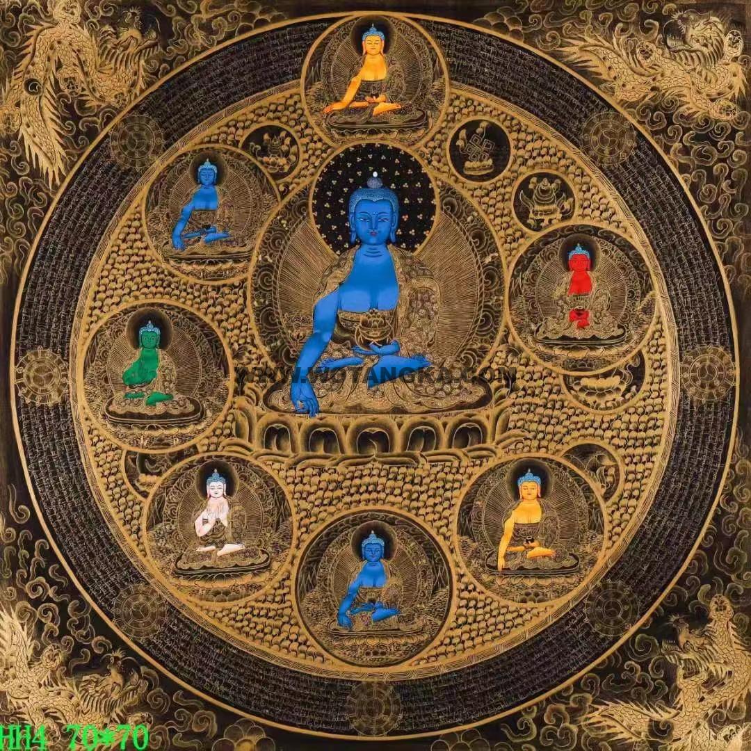 尼泊尔国宝级知名画僧那噶王(Nawang Lama)亲绘,《药师佛·药师八佛坛城》唐卡由那噶王(Nawang Lama)喇嘛签名。 画工精美细腻,金线如发丝,晕染和描金相当的完美,难得的高品质精品唐卡,值得收藏的经典之作。 采用24K真金描线,天然矿石颜料着色晕染。画工细腻,开脸殊胜,是一副难得一见的好唐卡。
