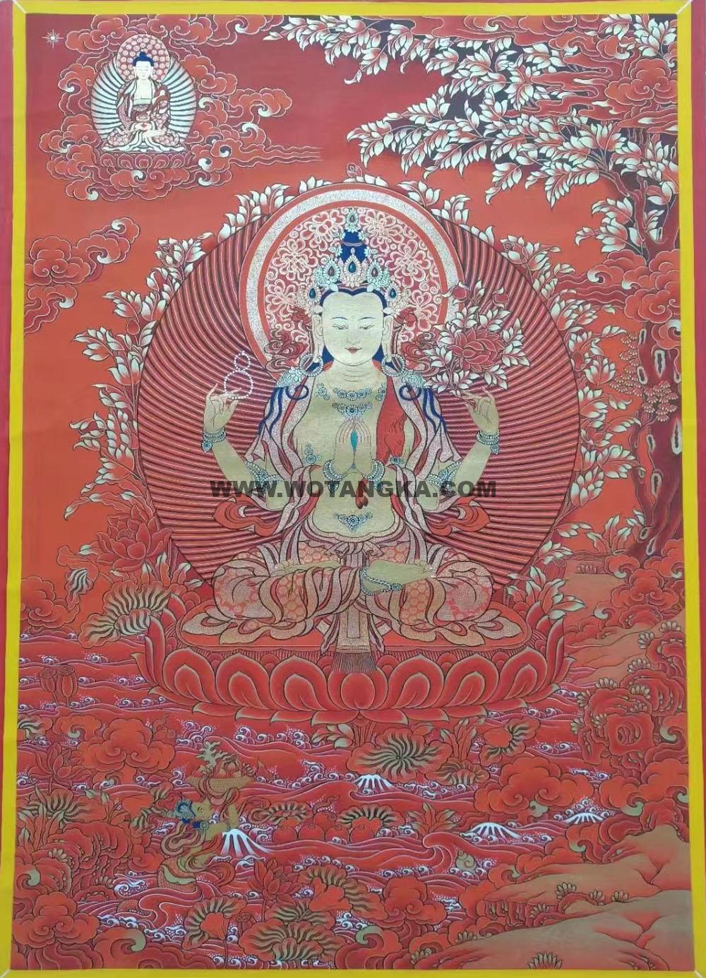 编号188-992592:红金唐卡-四臂观音(60*45CM左右) | 沃唐卡www.WoTangKa.com