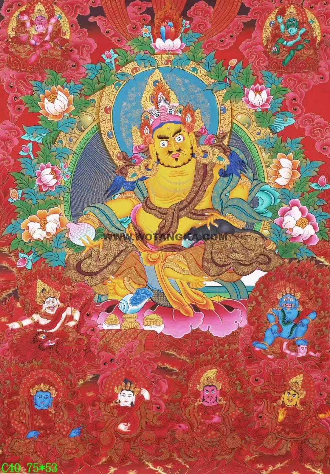 尼泊尔知名唐卡画师作品,纯手绘布本唐卡【黄财神·五方财神】,作品采用24K真金金粉混合天然颜料纯手绘而成。作品主尊宝相传神。布图干净精美、画工非常的细腻,严格的遵照佛经的度量仪轨如法绘制,期待有缘人。