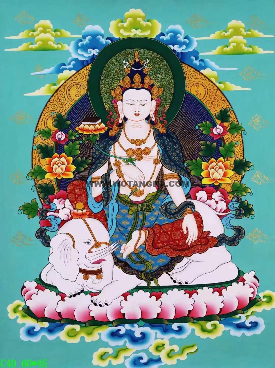 尼泊尔知名唐卡画师力作《普贤菩萨》唐卡手绘布本,作品采用24K真金描线,天然矿石颜料着色晕染,画工细腻,开脸殊胜,是一副难得一见的好唐卡作品。