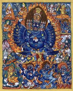 大威德金刚藏密认为其是文殊菩萨的忿怒相,属教令轮身,是事业的根本。于无上瑜伽部、格鲁派(黄教)中,与胜乐金刚、密集金刚同为主要的本尊。