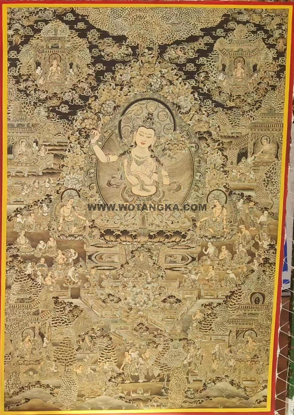 编号188-382090:黑金唐卡-文殊菩萨·净土道场(150*100CM左右) | 沃唐卡www.WoTangKa.com