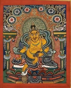 黄财神在象雄文中称为“占巴拉”,藏文叫做“诺拉”,翻译成汉文叫做“财神”。 藏名叫作“占巴拉色波”或“藏色”,他的色肤是黄色,故称为黄财神。黄财神为藏地各大教派尊奉的五色财神之一,黄财神在密宗教法中,属于财神也是护法神,五色财神之一。