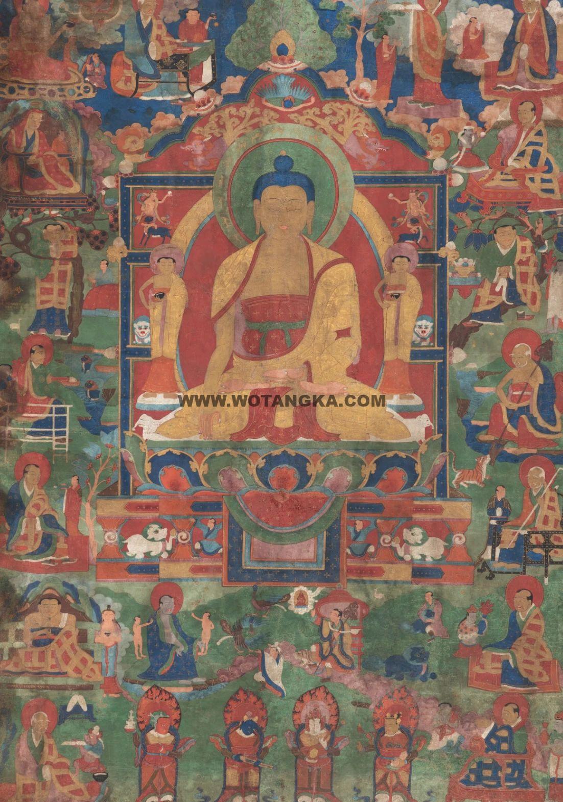 沃唐卡编号AC14227:释迦牟尼佛与十八罗汉