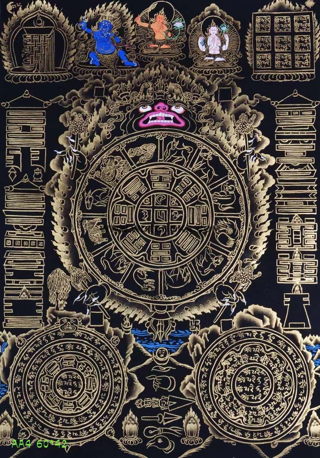 尼泊尔精品唐卡-九宫八卦,手绘布本。采用K真金描线,天然矿石颜料着色晕染,画工细腻,开脸殊胜,喜欢不要错过。
