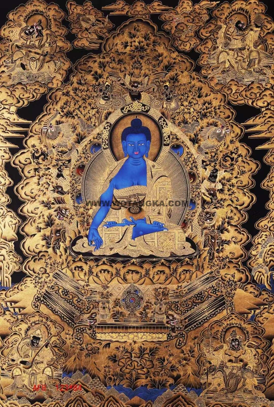 ️尼泊尔成名喇嘛力作【药师佛】手绘布本唐卡。作品采用金粉混合矿物颜料纯手绘而成。作品主尊宝相传神。布图精美、画工非常的细腻,严格的遵照佛经的度量仪轨如法绘制,期待有缘人。