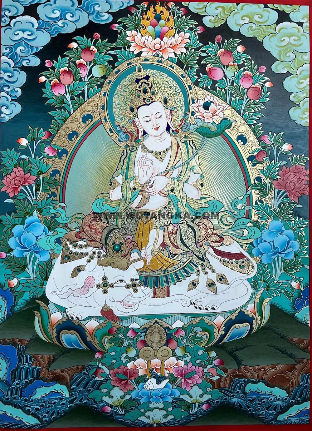 编号188-351128:彩绘唐卡-普贤菩萨(60*45CM左右) | 沃唐卡www.WoTangKa.com