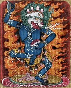 对藏传佛教密法中的忿怒本尊形相不熟悉的人,也许会对此心存疑虑和顾忌,其实这并没有什么,密法中的忿怒本尊身上,往往都有尸垫、人皮、兽皮及骷髅等等饰物。它们看似恐怖,但其实各有表义,并非是真的人皮、尸体等,更非由杀生所得,而是由本尊之乐空智所变现出的形相而已。这些“恐怖”的东西,实际上只是某些佛教概念的外在标记和象征。