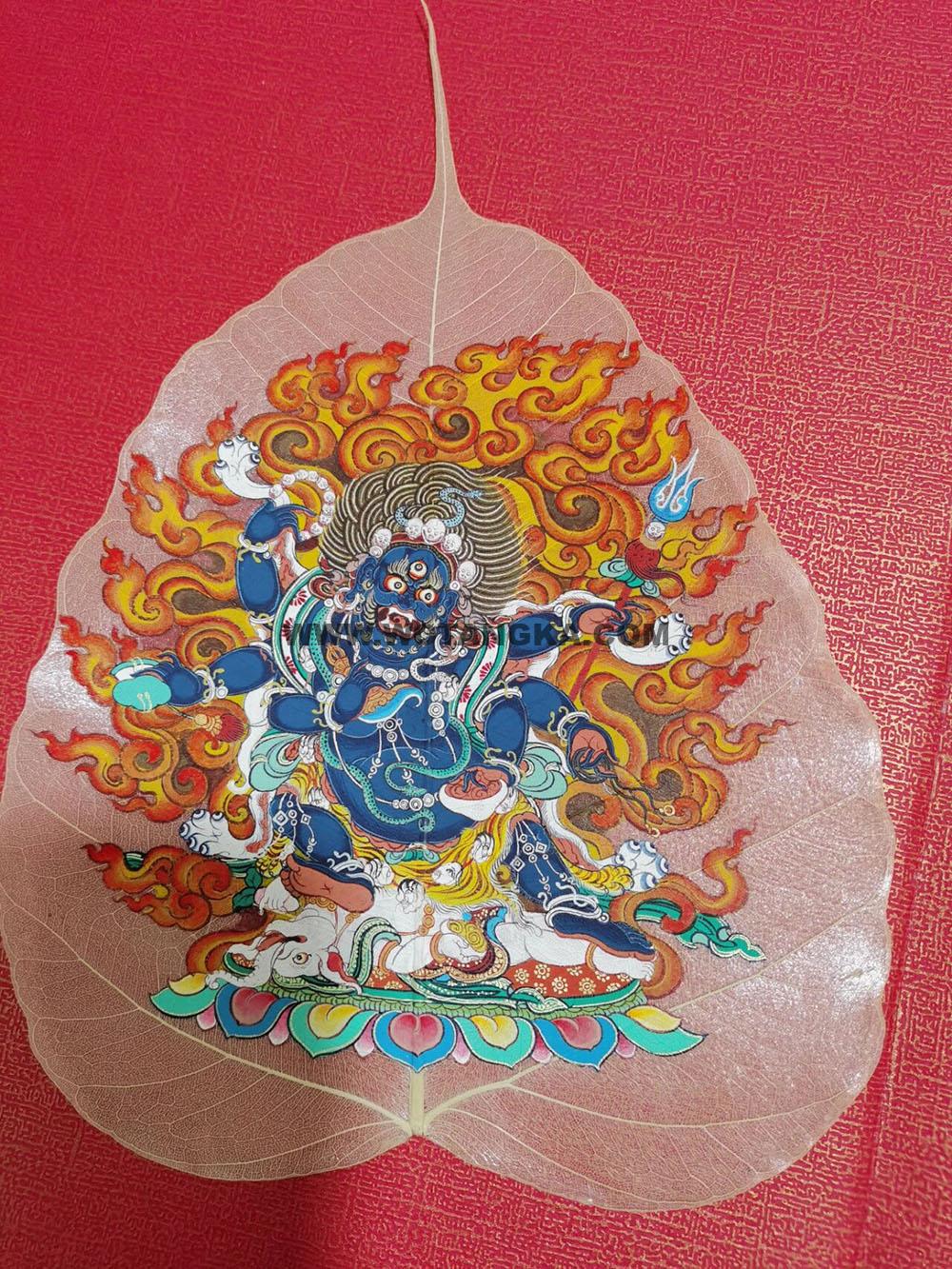 玛哈嘎拉是梵语,译为大黑天,即”怙主”之意,为上师、本尊、护法三根本之护法神,是佛教三根本的化身。其为调伏刚强众生而呈现忿怒相,本尊及眷属护法众除护持佛法外,依缘起多示现为两臂、四臂、六臂黑、白等形象,为藏传佛教诸宗共同推崇的智慧护法,是藏传佛教中最重要的护法神之一。